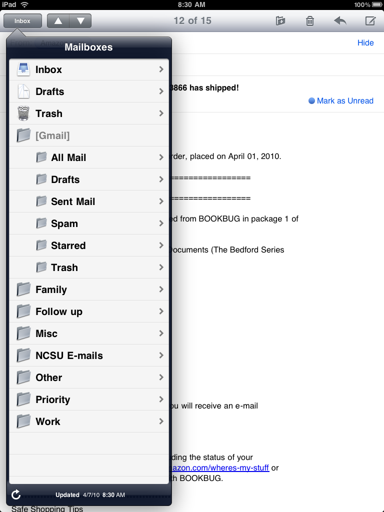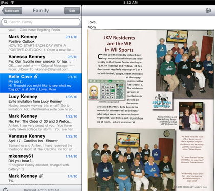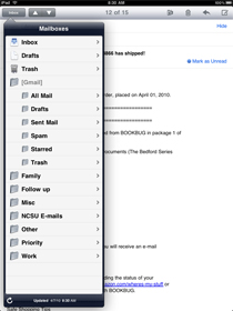 在屏幕上的清晰度辐射后,我花了时间与iPad上提供的邮件程序设置我的电子邮件帐户。对于那些用iPhone的人来说,你经历了相同的过程。对于您的那些没有,它非常快速地输入您的电子邮件地址,传出地址和传入地址 - 您可以在您当前检查电子邮件的网站上的某处找到所有这些。这是一个最简单的过程最少。