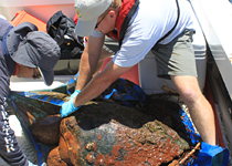 格雷格博士Lewbart, professor of aquatic animal medicine; Dr. Craig Harms, associate professor of aquatic, wildlife, and zoologic medicine; and Shane Christian, marine animal veterinary technician, are working with theAudubon Nature Institutein New Orleans to rescue sea turtles who have encountered the spill. The affected species include the endangered Kemp’s ridley sea turtles, green sea turtles, loggerheads, and hawksbills.