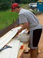 由NC州议会主任足球业务主任组织kit hughes.,球员花了五天的建造和撕毁了三角形的房子,为人类栖息地的韦克县章。他们摇摆锤和大锤,削减木材和再生硬木地板,所有人都以帮助人们在一天将自己的努力变成房屋的人们居住的房主可以负担得起。
