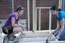 作为一个由教务长办公室资助的为期10周的夏季项目的一部分,学生们在布鲁克斯大厅后面的一个小围墙内设计并建造了这些小屋。他们五人一组完成设计,从县里获得必要的许可,然后从头开始建造建筑。建造小屋的大部分原材料都是捐赠的。