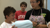 这名六年级学生的设计是在设计学院(College of design)举办的一项为期两周的名为“中学创新学院”(Middle School Innovators Academy)的密集暑期项目的成果。六个十几岁的孩子与工业设计教授和研究生一起构思、制作和开发关于他们新产品的演示文稿——从游乐场设备到电脑鼠标再到水上行走设备。