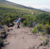 正如他们第二天早上出发的那样,布鲁克斯感到他的大腿肌肉收紧。一只蝴蝶沿着前方的道路飘扬,提升他的心情。他知道他们会通过各种区域 - 森林,荒野和高山沙漠 - 因为他们爬到了12,205英尺的Horombo Hut。