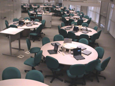 Beichner说,这样做的关键是改变了教室本身。扩大课程留下了大型演讲厅,以获得更多亲密的空间,学生坐在圆形,九个人桌子鼓励更多讨论。