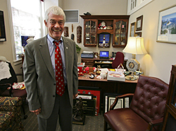 当他在NC国家超过四十年后准备退休时,斯塔福德发现超过一些人想要握手。每当他参加会议时,他就会介绍一个牌匾或框架照片或某种奖杯。将他的办公桌弄洒到地板上,是几十个这样的纪念品,包括来自大学剧院的储钱罐的照片,以及来自北卡罗来纳国民卫队的矿工的大型青铜雕像(最近两次呈现将军)。