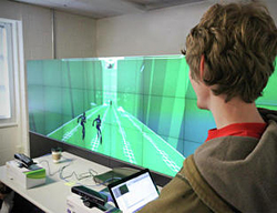 计算机科学副教授Michael Young表示,由Christie提供的广阔的视觉房地产Microtiles屏幕鼓励学生开发比典型电脑游戏更适合大型群体的游戏。它们甚至组合了两个运动传感装置,将连接到系统的玩家的数量加倍。