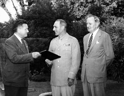 李在1940年开始工作,当时他被分配到开发空气士兵的项目时成为他的遗产。根据Autry的说法,秘诀在于Lee的上级概念,但是当他看到德国伞兵的新闻播放器时,它捕获了富兰克林德拉诺罗斯福的想象力。李最终成为第101届航空公司的第一个指挥官,其中加入了英国和法国单位,领导了在D日的空中袭击。