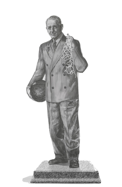 埃弗雷特·凯斯的雕像将是最接近雷诺兹的,这是对凯斯在竞技场完工中不可或缺的角色的肯定。穿着他标志性的双排扣西装,拿着篮网和篮球,凯斯将站在他以前的办公室外面。