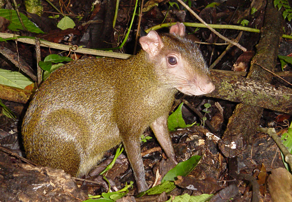 Agoutis不仅要吃一天,还隐藏种子,以备未来,当黑棕榈果的季节。在食物较多的地区,动物通常在晚上更早的时候进入洞穴,在早上更晚的时候出来,尽量减少在高风险时期的暴露。