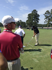 虽然在接下来的两周他没有具体的任务,但米彻姆一直在练习区域漫游,提供一些关于课程的建议,并沉浸在其他教练如何与巡回职业教练合作的过程中。在周一的练习赛中,他是第一个发球台的正式首发。周三早上,他花了很长时间观看菲尔·米克尔森在靶场的比赛。