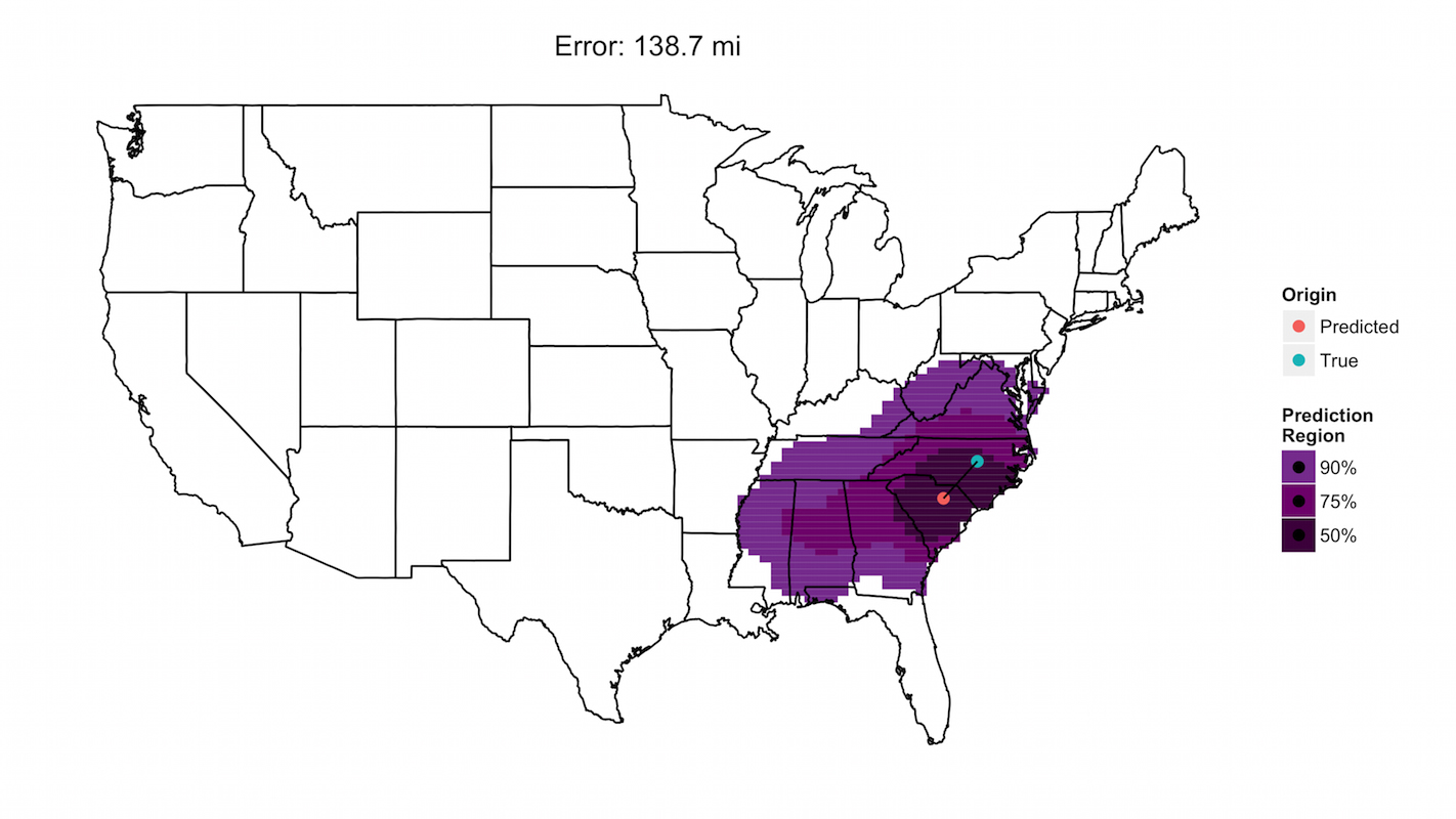 研究人员开发了一种模型,分析了粉尘样品中存在的真菌征集,并预测样本来自的地方。大约5%的时间,模型的预测是正确的抽样网站的35英里范围内。那些是最准确的预测。最严重的5%是至少645英里的。该模型的中位预测误差为143英里。但是,通过开发更先进的算法,研究团队已经努力使模型更准确。