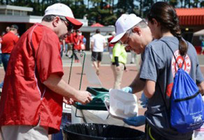 NC国家田径运动和北卡罗来纳州废物减少和回收办公室他们合作增加了体育场堆肥箱,用于收集每场比赛产生的食物垃圾和其他有机材料。这些废物将被回收到堆肥中,堆肥是一种营养丰富的土壤改良剂,用于种植植物、花卉和树木。