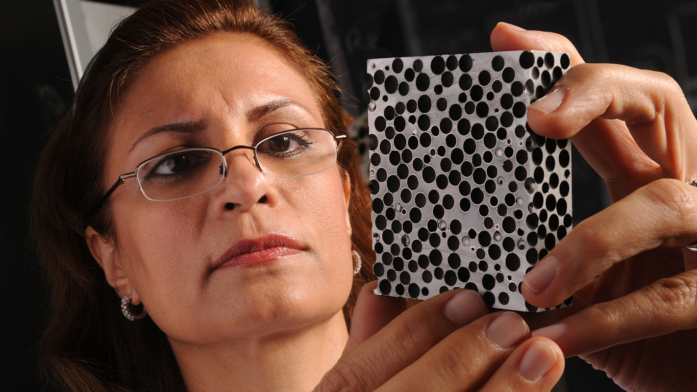 Rabiei说:“我们已经开发了两种制造cmf的技术。“一种是基于铸造一种低熔点基体材料,如铝,围绕一种高熔点材料,如钢制成的空心球。例如,这就产生了铝钢cmf。另一种技术是在预制空心球周围烧结或烘烤基体粉末。这就产生了cmf,比如钢-钢,它由钢基体中的钢空心球组成。”