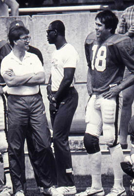 1971年10月9日:比赛还剩22秒时,威克森林队以15比14落后,在52码外的场地射门,试图赢得比赛。威克的踢球者在踢球时滑了一跤,球射入了北卡州立大学的比尔·米勒的手中。当米勒跑到边线触地得分时,威克森林大学的四分卫拉里·拉塞尔从替补席上过来拦截米勒,米勒最终被判得分。狼队以21-14的比分获胜,这是临时主教练迈克尔斯职业生涯的第一次胜利。