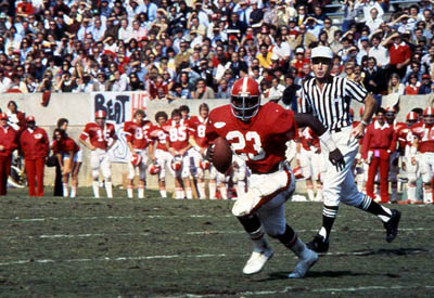 1986年10月25日:在这个充满了反败为胜和紧逼收尾的赛季里,狼队在一场由哥伦比亚广播公司(CBS)直播的州际比赛中以27-3击败了排名第16的克莱姆森队,取得了一场大胜。这是第一年执教狼队的主教练迪克·谢里丹首次主场战胜排名靠前的球队,他在他的首个赛季带领狼队取得了83 -1的战绩。在布兰特·马斯伯格的指挥下,史蒂夫·斯普瑞尔在名人堂杯的记者席上进行球探,体育总监吉姆·瓦尔瓦诺在记者席上招待了排名靠前的控球后卫克里斯·科奇亚尼,狼队克服了泥泞的场地条件赢得了比赛。埃里克·克雷默在第二节50码处触地得分击中丹尼·皮布尔斯,使本队以17-3领先,然后海伍德·杰夫瑞斯在最后一节迅速逆转,让老虎队措手不及。他轻松地跳了62码,触地得分,老虎队再也没有威胁到狼队的防守。狼队的防守由线卫弗雷德·斯通(Fred Stone)、帕特·蒂格(Pat Teague)和鼻子后卫桑迪·基亚(Sandy Kea)领导。