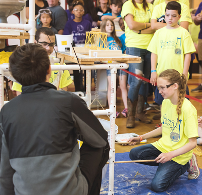 学生们在中溪小学(Middle Creek Elementary School)参加最后一场地区比赛时,莫兹克的团队眼光敏锐,他们指出那些用过量的热胶或千层面建造的桥梁,增加了重量。