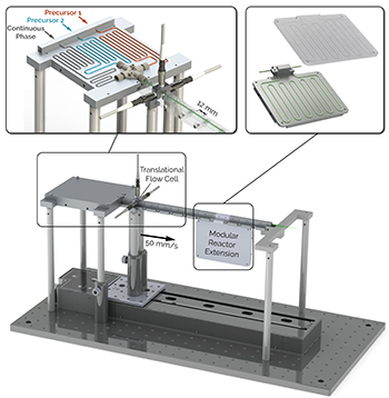 Abolhasani说:“这一挑战引起了人们对依赖精确控制的微流体合成的持续纳米制造方法的兴趣。”“但由于现有监测技术的限制,测试所有相关变量以找到制造给定结构的最佳组合需要非常长的时间,所以我们决定建立一个全新的平台。”