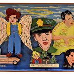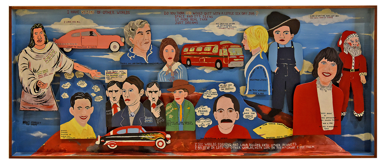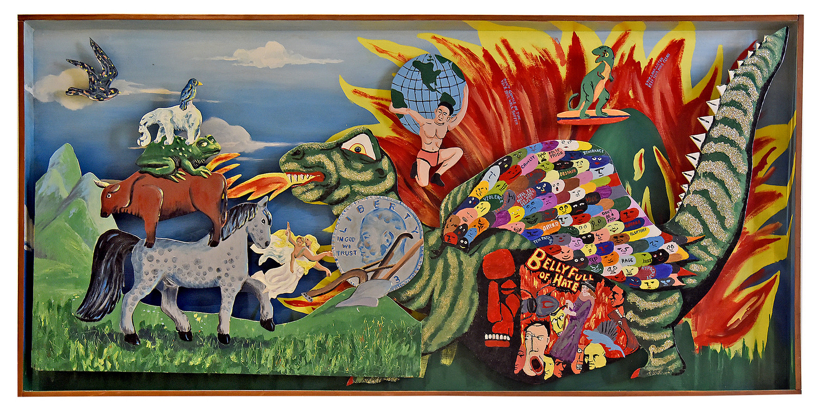 山湖研讨会是由1983年建立的两个艺术教授,他们邀请着名艺术家在鼓励合作的环境中创造作品。可以看到一种这种协作的结果把你的蜡烛烧入另一个世界是在霍华德芬特的指导下创造的一块作品,他通过绘画主流为谈话的头部和R.E.M来实现主流成名。芬斯特通过将他的愿景转化为图像,以至于他将以他称为“疑问”的轮廓模板的形式重新创建他的愿景。这些模板可用于制作数百个具有相同轮廓但以其他方式不同的碎片。在烧你的蜡烛,概述的形状来自芬特的猜测,但其他研讨会参与者绘制在细节中,例如天使的长袍或狮子的脸。