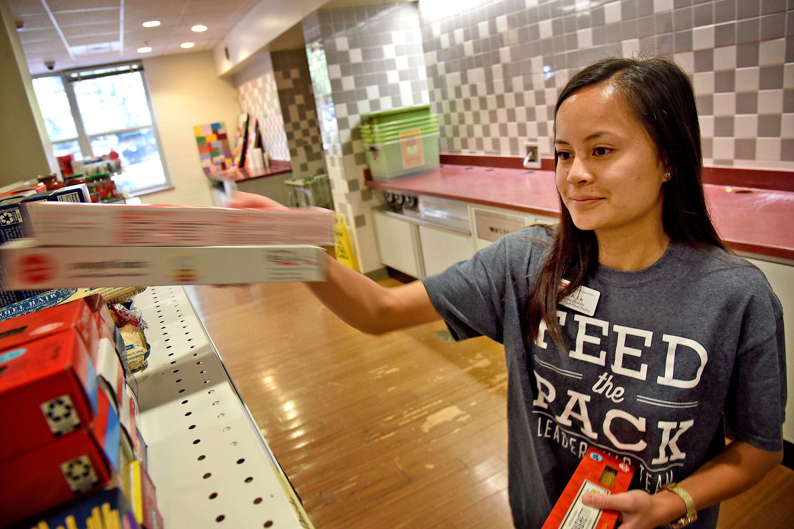这喂饱食品储藏室最近搬到了校园里的更大,更中心的位置。Melissa Green,NC国家领导和公民参与主任,她希望储餐室的新位置有助于减少粮食不安全的耻辱。