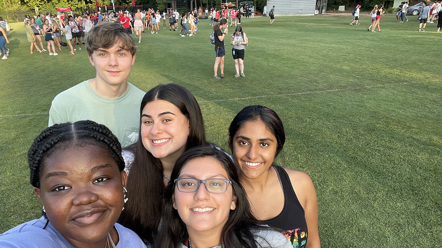 奥斯曼在NC州的第一个日子里,奥斯曼已经开始充分利用她的新家,在校园找到最喜欢的景点,享受欢迎周的活动和与她的住所大厅的新朋友分享餐点。