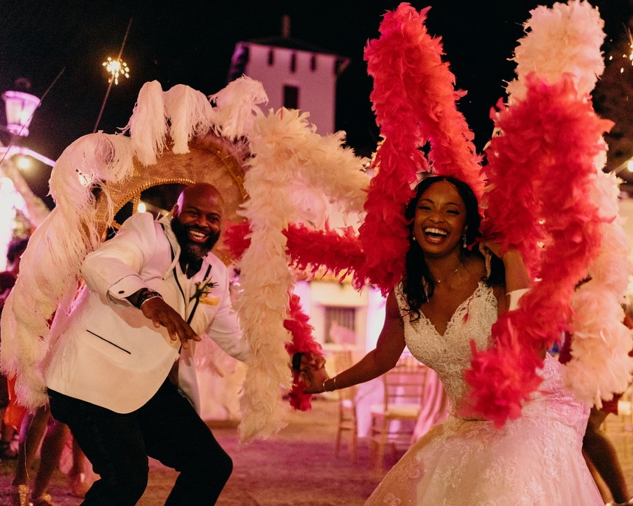 他们于12月31日在亚历克西斯的家乡圣克罗伊结婚。尽管传统的新年前夜嘉年华因新冠肺炎疫情而被取消,但安倍和亚历克西斯在婚礼上带来了庆祝活动,包括索卡音乐、舞者和羽毛饰品。