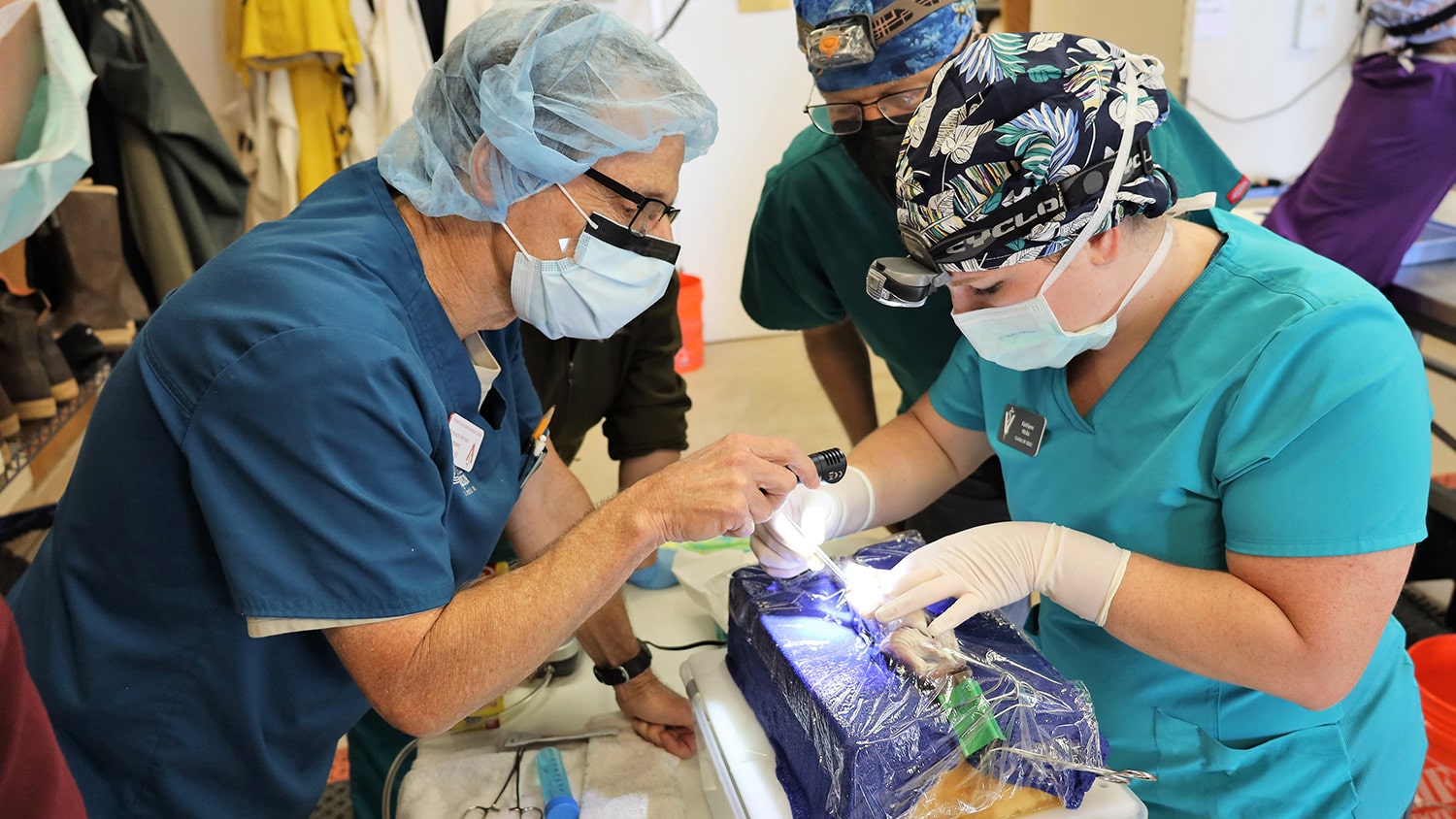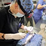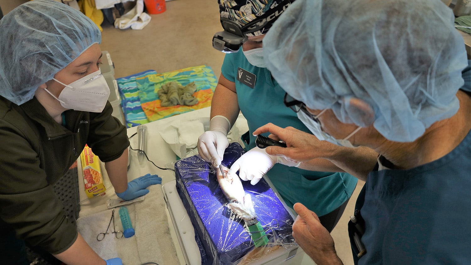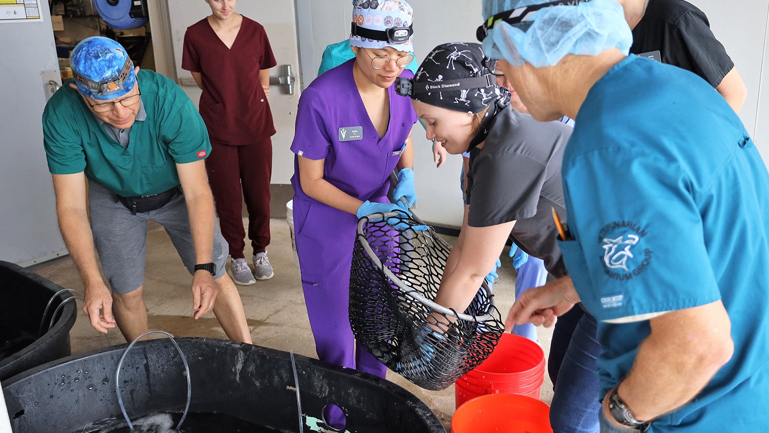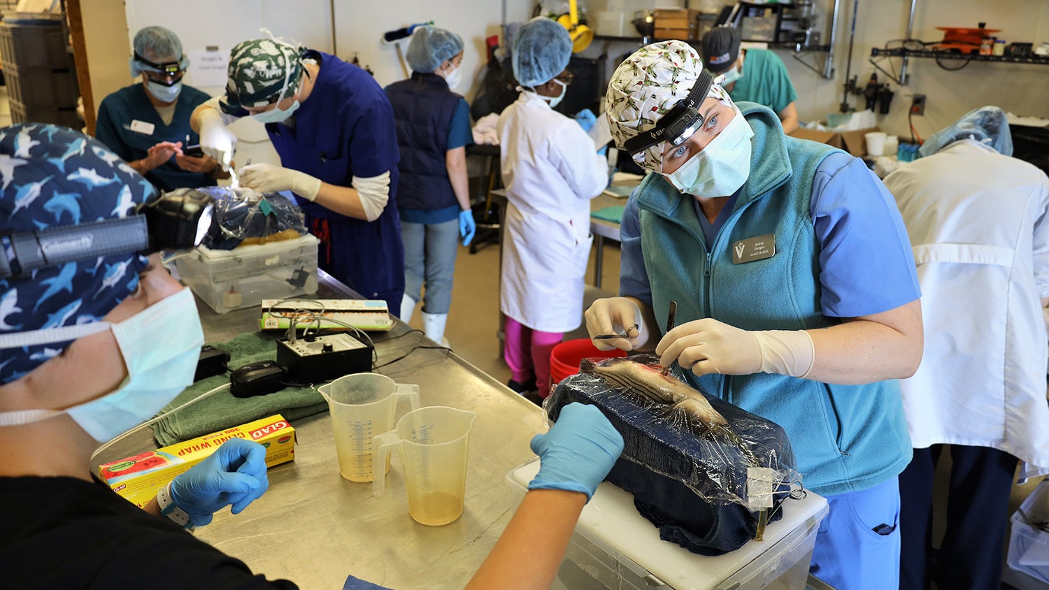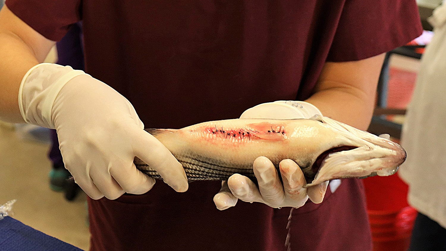 At NC State's Center for Marine Sciences and Technology in Morehead City, 18 veterinary medicine students get hands-on experience operating on fish.