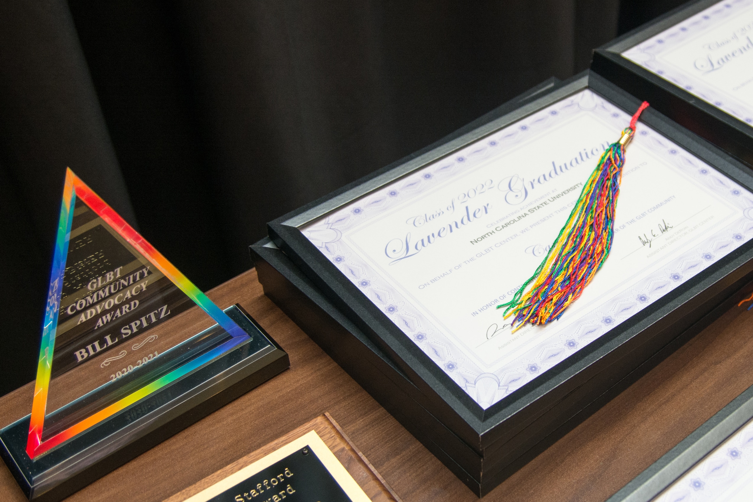 NC State’s first Lavender Graduation was held in May 2009, a year after the GLBT Center opened. Every spring since, our LGBT+ students have participated in the ceremony where identities are affirmed, awards are presented, and each graduate receives a rainbow stole. This year, the GLBT Center celebrated three students with center awards and 35 graduates from across the university.