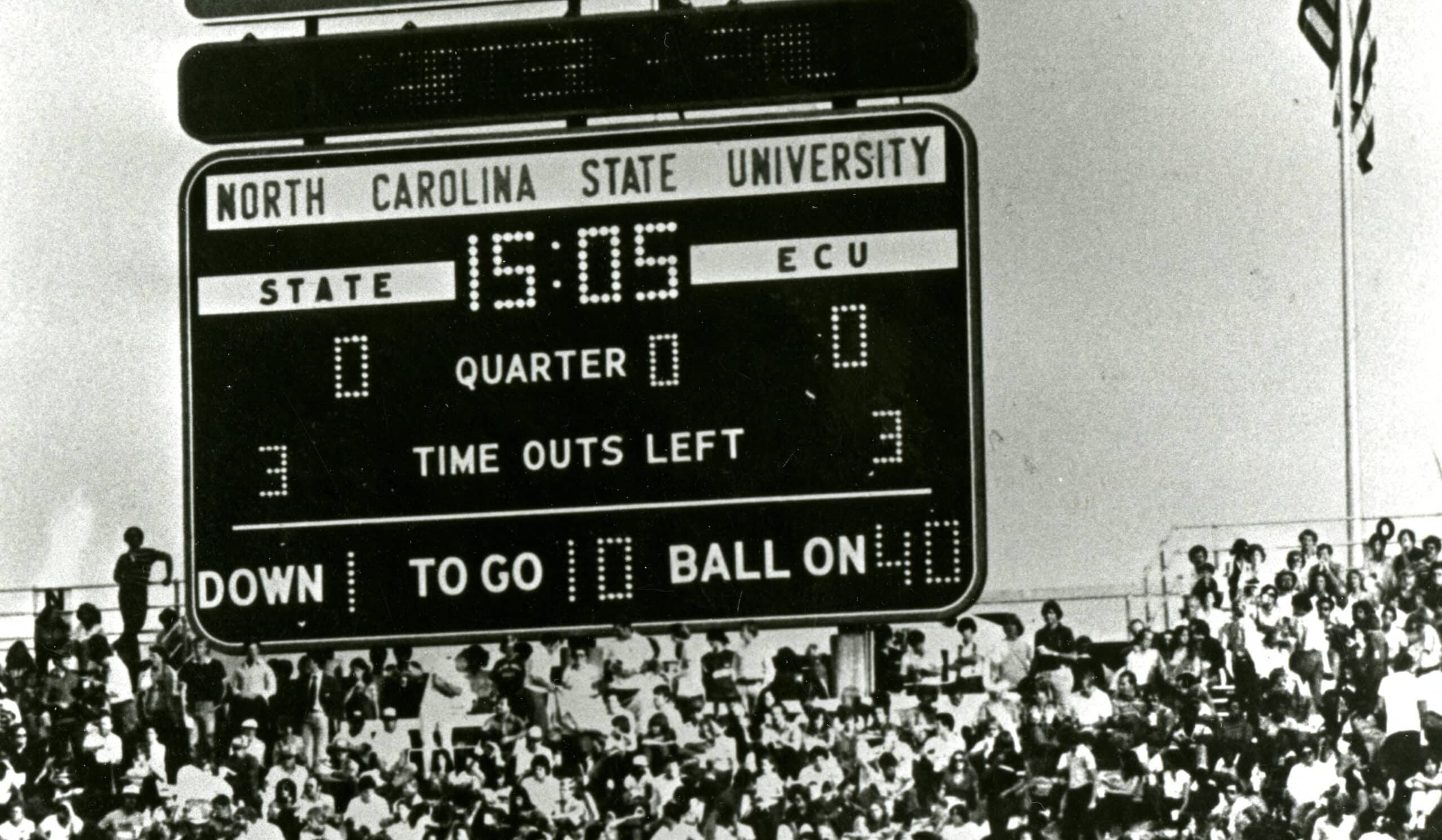 In 1995, a classified ad inTechnicianbegged interested applicants to help run the Carter-Finley Stadium scoreboard for $6 per hour, with the caveat that any successful candidate “must be willing to work weekends.” Duties included programming the scoreboard and learning to replace receiver cards and light bulbs.