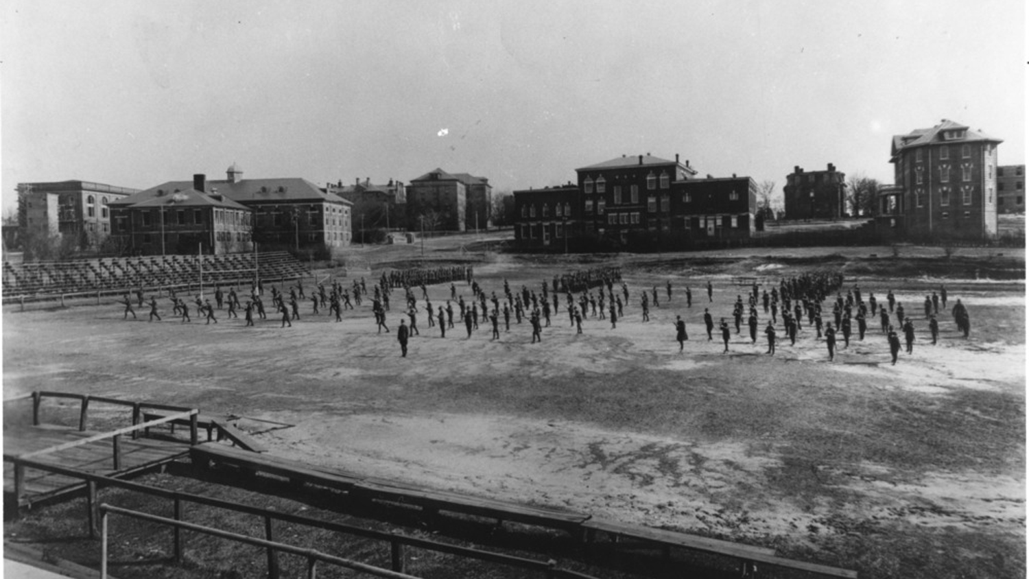 1918年西班牙流感大流行期间,数百名学生和教职员工受到感染,超过12人死亡。伊莉莎·瑞迪克(Eliza Riddick)是在校园里服务的一名志愿护士医务室。