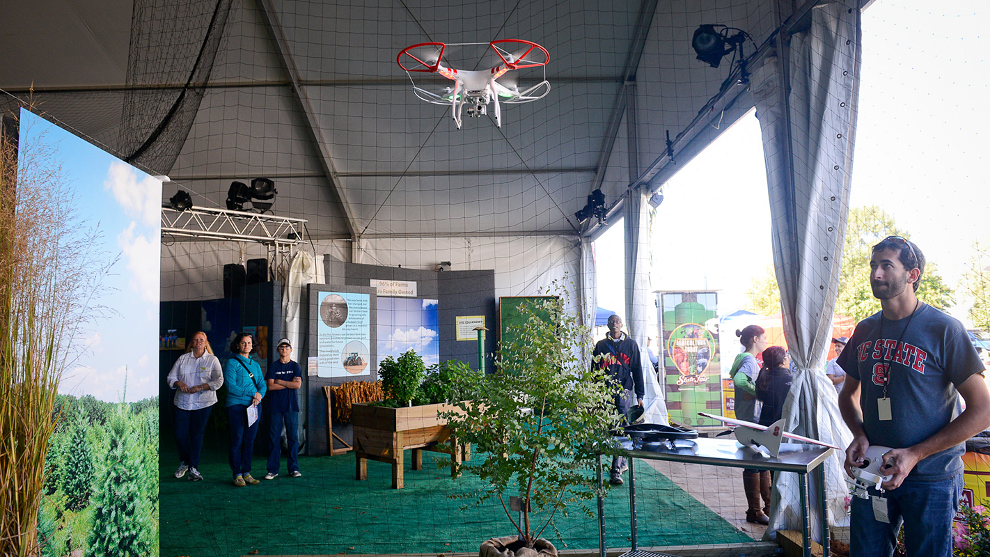 NC州的空中机器人俱乐部为Fairgoers提供了一个鸟瞰未来的无线电控制的持续示威观察飞机。